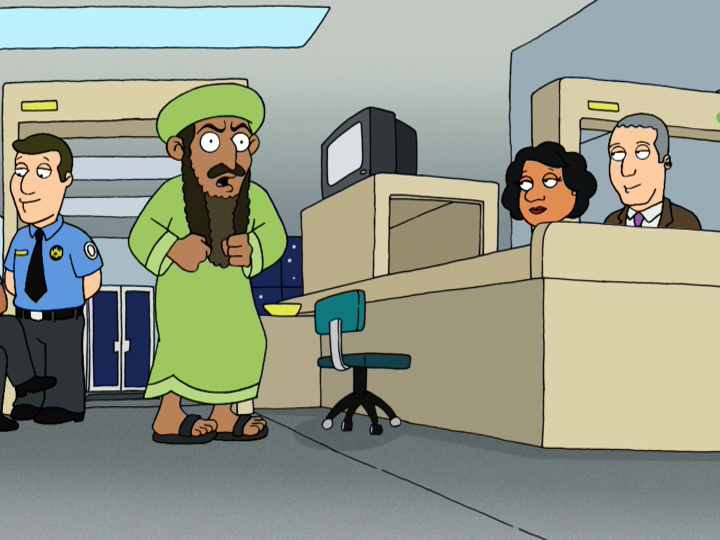 As if Seth MacFarlane's animated series couldn't have been more controversial, an episode titled "Road to Rhode Island" has an eyebrow raising scene in which Osama bin Laden distracts an Airport security guard while his X-ray machine detects smuggled weapons, was immediately cut post 9/11.
